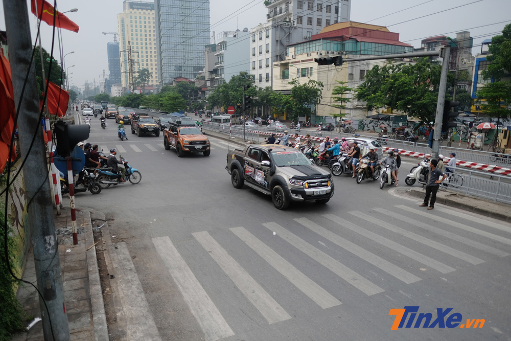 Dàn xe bán tải diễu hành qua các tuyến phố lớn của Hà Nội.