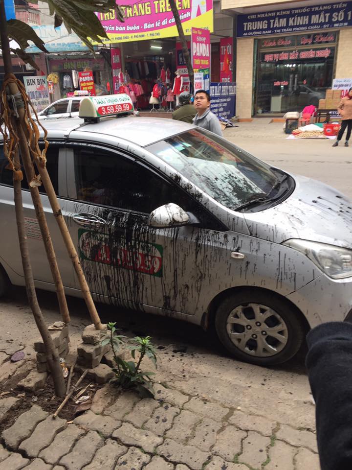 Mới đây, hình ảnh về một chiếc xe taxi tại thị trấn Phong Châu, tỉnh Phú Thọ bị bôi bẩn bởi một hỗn hợp dung dịch màu đen nghi là dầu cặn xả ra từ xe máy đã khiến nhiều người bất bình. Được biết, chiếc xe taxi này đã đỗ chắn trước cửa nhà một cửa hàng sửa xe máy tại đây và khiến chủ cửa hàng nổi giận đến mức đem cả dung dịch bẩn ra để đổi lên chiếc xe taxi.