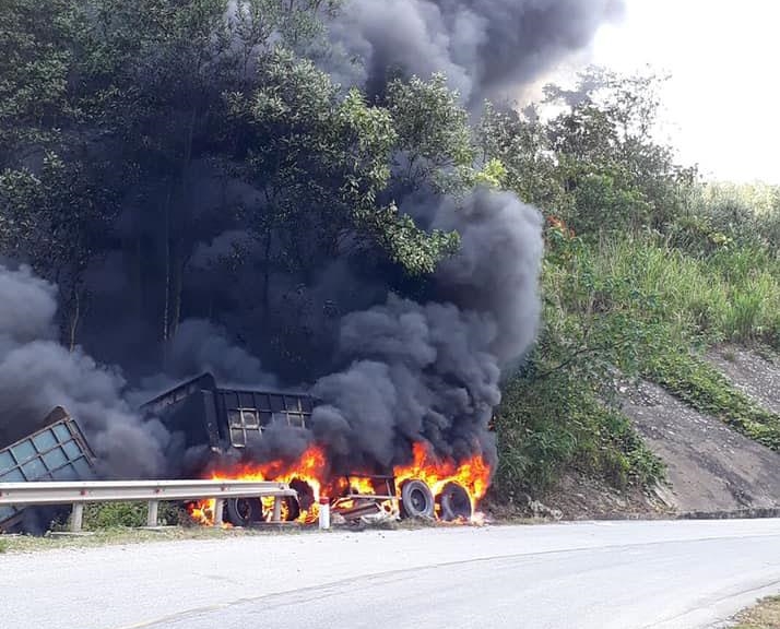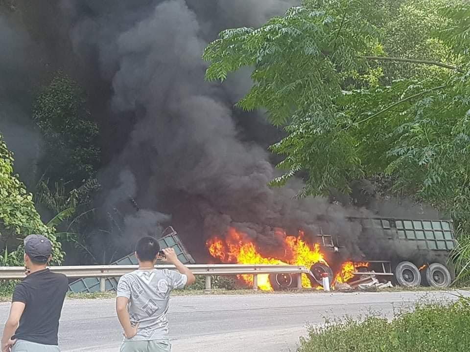Khi đi đến địa bàn xã Dân Hóa, đoạn qua Cổng Trời, chiếc xe container bất ngờ bị mất lái và lao vào vệ đường khiến xe bắt lửa và nhanh chóng bị "bà hoả" thiêu rụi.