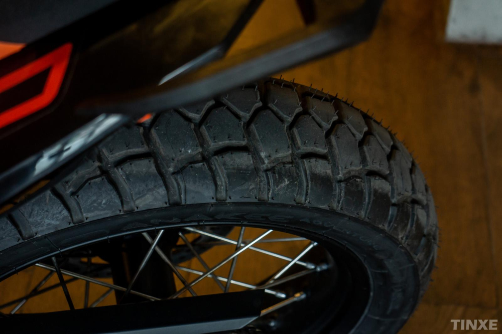 Có thể thấy, xe được trang bị cho cặp vành nan Off-road với kích thước vành trước lớn đến 21 inch kết hợp với cặp phanh đĩa đôi 320 mm cùng bộ phanh 4 piston và bộ phanh an toàn ABS của BOSCH. Bộ đầu này chắc chắn sẽ giúp chiếc xe có khả năng xử lý linh hoạt và off-road tốt hơn giống như những mẫu xe Enduro cào cào đỉnh cao.