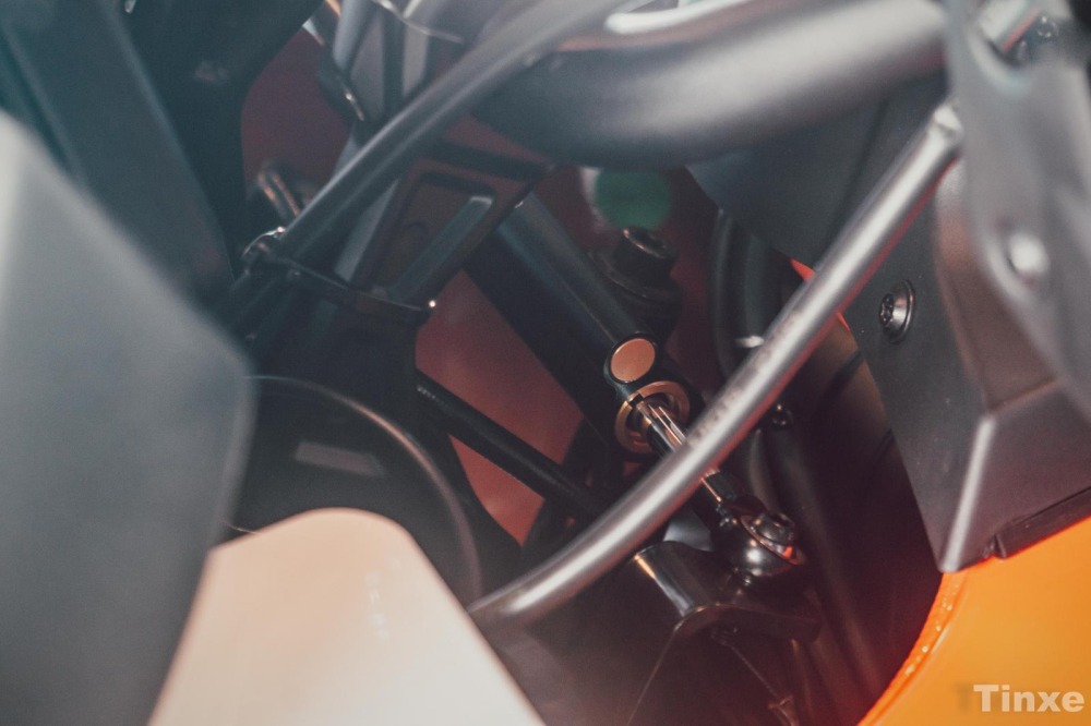 Để ăn nhập với thiết kế tổng thể, yên xe có cấu tạo vuông vắn theo xe với dạng yên đôi cùng họa tiết sọc dập nổi. Chiều cao yên xe được công bố thấp nhất ở mức 835mm sau khi đã hạ yên, đáng chú ý là trang bị này còn được tích hợp hệ thống thích ứng chiều cao tự động, mang đến sự tiện lợi cho người dùng. Công nghệ trị giá nghìn đô này chính là sự khác biệt lớn nhất giữa Pan America 125 bản thường và bản Special, giúp cho các biker có chiều cao khiêm tốn ở mức 1m55 vẫn có thể sử dụng chiếc xe một cách dễ dàng.