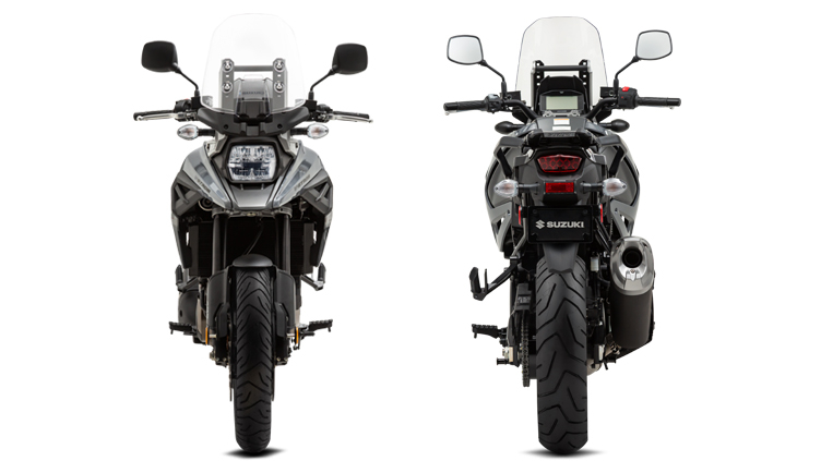 Theo đó, Suzuki V-Strom 1050 lấy cảm hứng từ mẫu Suzuki DR-Big với thiết kế Rally có phần cổ điển, dáng xe cao ráo, nổi bật ở đầu xe là đèn pha hình vuông, phía dưới là chắn bùn phụ và phía trên là kính chắn gió. Đuôi xe có thiết kế cứng cáp hơn, ăn nhập với tổng thể xe.