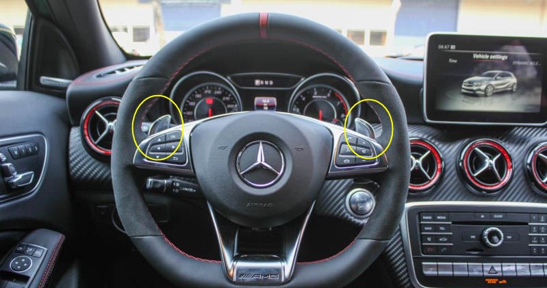 Lẫy chuyển số sau vô lăng của một chiếc Mercedes-Benz