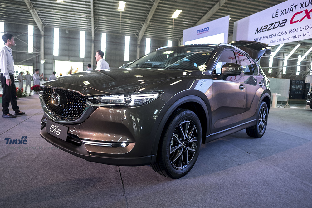 Mazda CX-5 vẫn chung thuỷ với ngôn ngữ thiết kế Kodo bắt mắt của mình nhưng đã được tinh chỉnh lại để ấn tượng hơn. Đặc biệt là ở phần đầu xe với hệ thống đèn chiếu sáng full-LED dạng híp cùng lưới tản nhiệt mặt cười ốp viền crôm đầy cuốn hút. Ngay cả đèn định vị ban ngày trên Mazda CX-5 cũng mang thiết kế dạng thanh kép song song tạo ấn tượng thị giác khá tốt so với thế hệ trước. Ngoài ra, một điểm nhấn nữa là Mazda CX-5 được trang bị la-zăng kích thước 19".