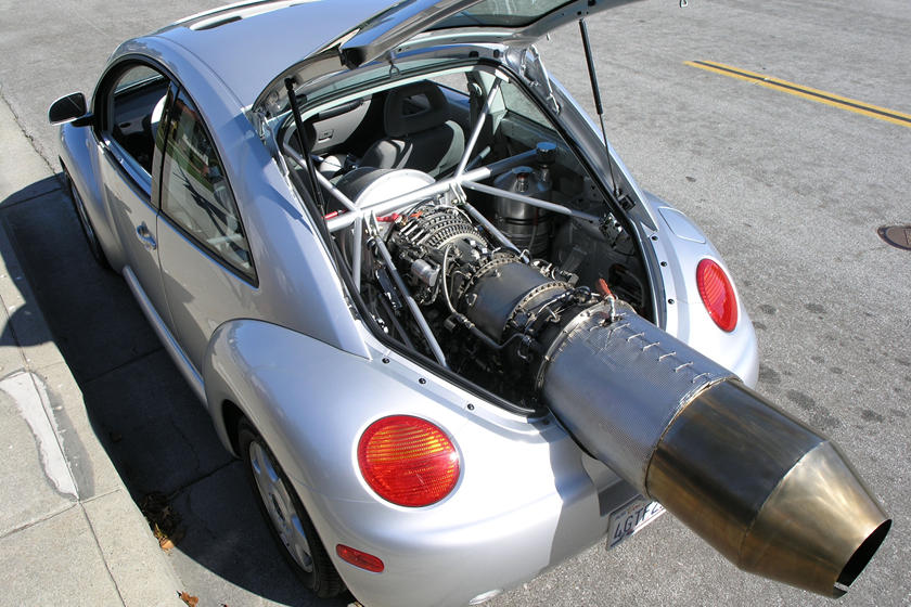 Những động cơ hướng tâm thật tuyệt, nhưng sẽ ra sao nếu chúng ta muốn thiêu cháy những tên ngốc thiếu kiên nhẫn trong các chiếc xe ngay sau lưng khi đợi đèn giao thông? Ron Partrick ở California đã giải quyết vấn đề này bằng cách bổ sung một động cơ tua-bin khí được điều chỉnh cho máy bay phản lực từ một chiếc trực thăng Sea King vào chiếc Beetle của mình. Với công suất 1.350 mã lực, nó có lẽ là chiếc New Beetle nhanh nhất trên đường phố, và nó có thể đi trên trên đường phố vì Patrick vẫn giữ lại động cơ Volkswagen nguyên gốc để đảm bảo tính hợp pháp cho chiếc xe.