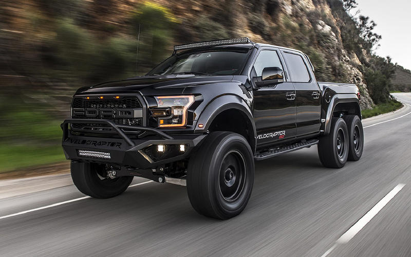 Ford F-150 là một trong mẫu xe bán chạy nhất ở Mỹ, nhưng Hennessey đã đưa nó đến một chân trời mới với VelociRaptor 6x6. Ở bên ngoài, nó được trang bị hệ dẫn động 6 bánh với bộ la-zăng 20-inch và hệ thống treo off-road Fox độ riêng. Thêm nữa, người mua sẽ có một động cơ tăng áp kép V8 sản sinh 600 mã lực, bộ phanh Brembo và nội thất thêu tay tinh xảo, cũng như các bóng đèn bổ sung và một thanh cản lớn phía trước để “đe dọa” những người đi đường khác.