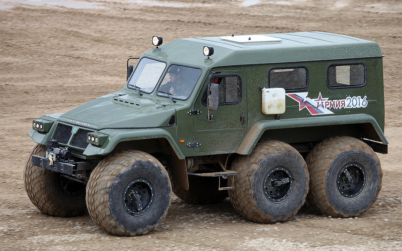 Cái tên nói lên tất cả những bạn cần biết về mẫu xe Nga 6x6 này. Nó có thể vận hành trên mọi dạng địa hình, và nó có thể chạm tới những chỗ mà các mẫu off-road khác không thể nhờ có khả năng lưỡng cư của nó. Nửa tá lốp xe phao khổng lồ giúp nó có thể nổi trên mặt nước, và dễ dàng đi qua đầm lầy, tuyết, cát hoặc bùn sâu.