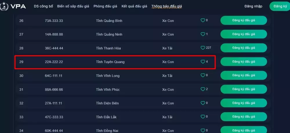 Mới đây, giới mê biển đẹp lại xôn xao trước việc 2 siêu biển hàng hiếm là 11A-111.11 của tỉnh Cao Bằng và 22A-222.22 của tỉnh Tuyên Quang đang chuẩn bị được công ty đấu giá hợp danh Việt Nam đưa ra đấu giá công khai.