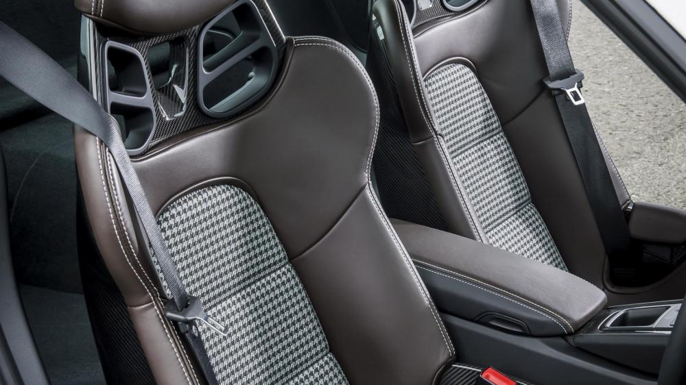 Sự nổi tiếng và đẳng cấp của họa tiết houndstooth đã được phục sinh một lần nữa cho mẫu 991R, chất liệu vải tuýt chống mòn cổ điển của Porsche là một biểu tượng kể từ thập niên 1950’. Nó thậm chí còn sống thọ hơn cả kiểu họa tiết pasha hư ảo từng xuất hiện ở mẫu xe 944 và 928.