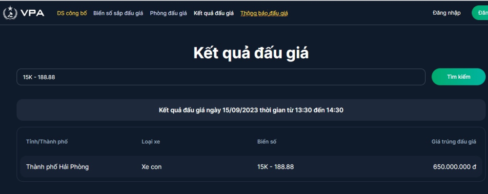 Biển số 15K-188.88 được đấu giá thấp nhất, giá chỉ bằng xe Mitsubishi Xpander