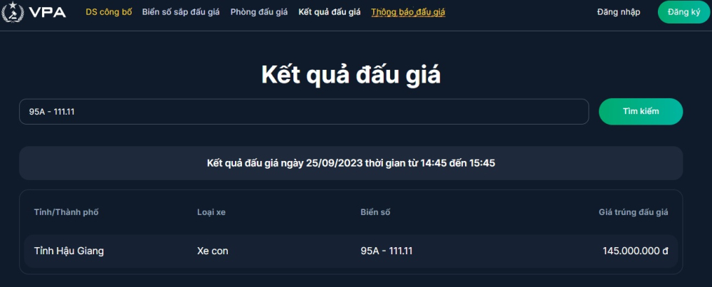 Trong ngày hôm qua, 25 tháng 9 năm 2023, công ty đấu giá hợp danh Việt Nam đã đưa ra 48 biển số để tham dự đấu giá chỉ trong 1 ngày, nhiều nhất trong 4 lần đấu giá gần đây. Trong các bộ số này, có nhiều chiếc biển rất đẹp như ngũ quý, tứ quý hay sảnh rồng.