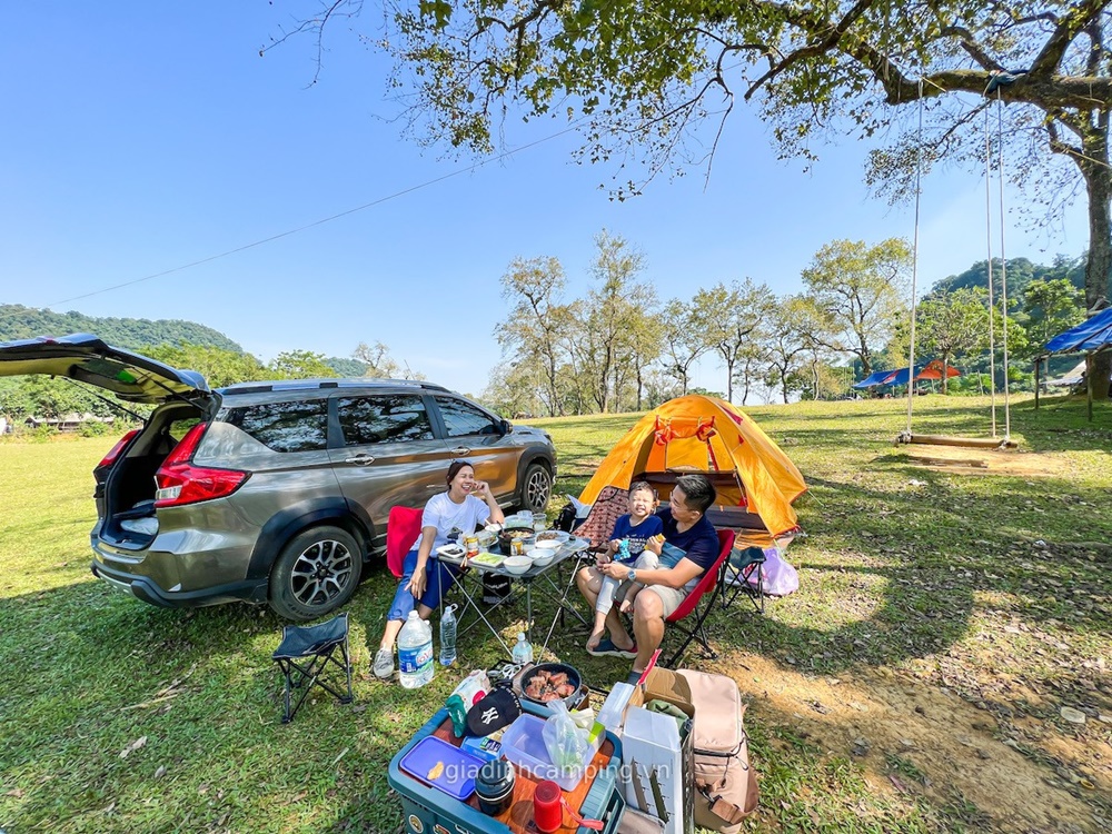 Vậy nên các gia đình còn lo lắng xe mình 1 cầu thì mạnh dạn đi nếu mà không xót xe. Còn không thì gửi xe dưới chân núi và thuê dịch vụ bán tải chở lên tận điểm cắm trại. Ngoài ra, việc chọn chỗ cắm trại cũng quan trọng. Nếu gần đường quá sẽ bị ồn và bụi. Nếu xe có thể lên được những chỗ khó thì sẽ yên tĩnh và riêng tư hơn".