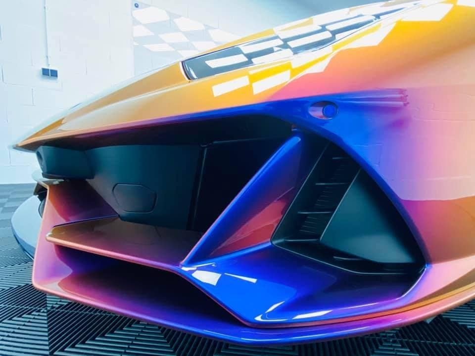Nhìn ngoại thất chiếc siêu xe Lamborghini Huracan EVO có màu sơn Blu Hal, đôi khi chúng ta thấy xe có màu xanh dương, lúc chuyển sang cam hay tím. Màu sơn của xe còn phụ thuộc vào góc nhìn cũng như ánh nắng chiếu vào xe. Tại Việt Nam, chỉ có đúng duy nhất một chiếc siêu xe mang màu sơn tắc kè chính hãng đó là chiếc McLaren Senna của doanh nhân quận 12 với màu sơn Cerberus Pearl.
