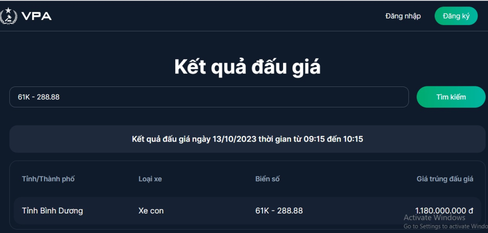 Kết quả đợt đấu giá đầu tiên trong ngày 13/10 do công ty đấu giá hợp danh Việt Nam công bố cho thấy, một số biển số được trả giá cao: 51K - 788.88 giá 1,96 tỷ đồng, 61K - 266.66 giá 1,265 tỷ đồng, 51K - 969.69 giá 910 triệu đồng, 30K - 558.88 giá 865 triệu đồng,...