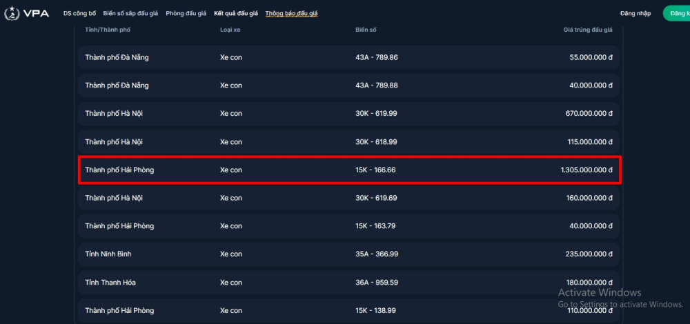 Cụ thể, sau 1 tiếng đấu giá, biển số 15K-166.66 đã trúng đấu giá mức khá cao, tận 1,305 tỷ đồng, cao hơn khoảng 400 triệu đồng so với mức trúng đấu giá của biển số cao thứ 2 là 51K-922.22 (900 triệu đồng), và biển trúng đấu giá cao thứ 3 là 30K-466.66 (810 triệu đồng).
