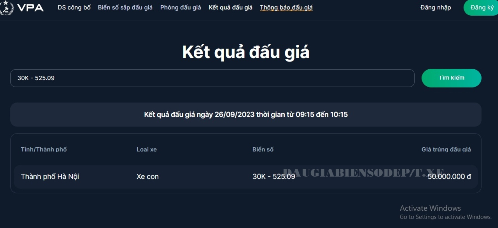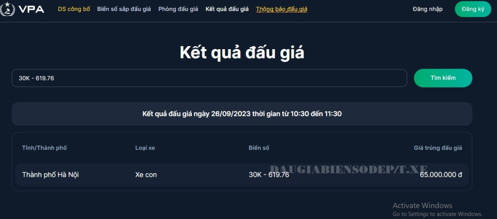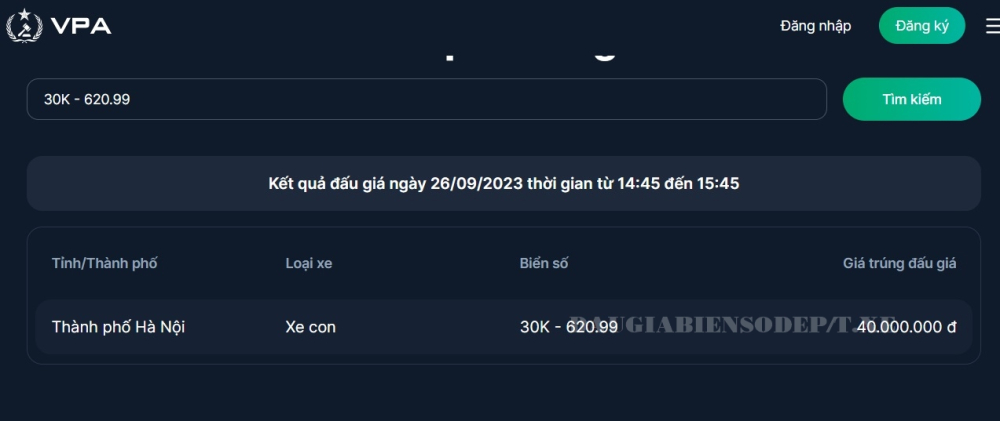 Cụ thể, hết phiên đấu giá ngày 26 tháng 9 năm 2023, kết quả do công ty đấu giá hợp danh Việt Nam thông báo cho thấy có 2 biển số trúng đấu giá mức thấp, bằng với giá khởi điểm là 40 triệu đồng. Cụ thể đó là các biển số 37K-185.68, 30K-620.99.