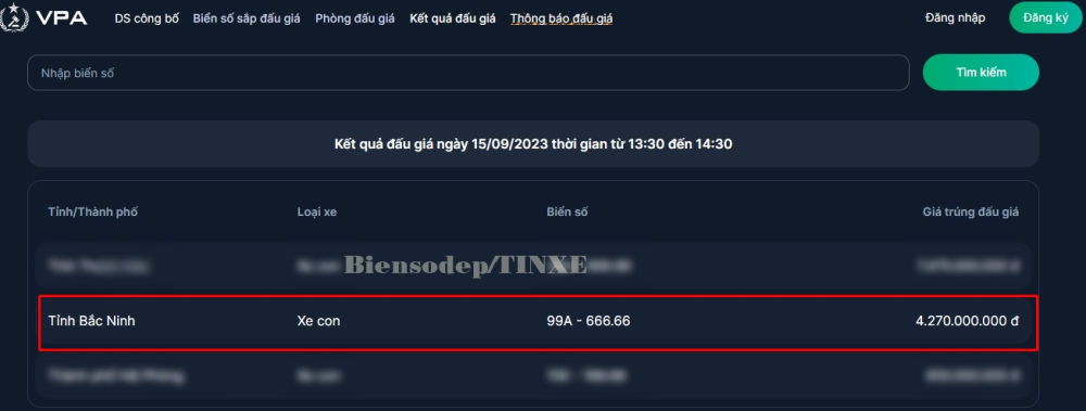 Vào ngày 15 tháng 9 năm 2023, 11 biển số siêu đẹp của 10 tỉnh, thành phố trực thuộc trung ương đã được mang ra đấu giá và thu về số tiền hơn 82 tỷ đồng. Đến nay, ngày 20 tháng 9 năm 2023, thông tin chúng tôi nhận được là có 1 người trúng đấu giá đã hoàn thành xong các thủ tục cần thiết, để được cấp siêu biển mà mình trúng đấu giá.