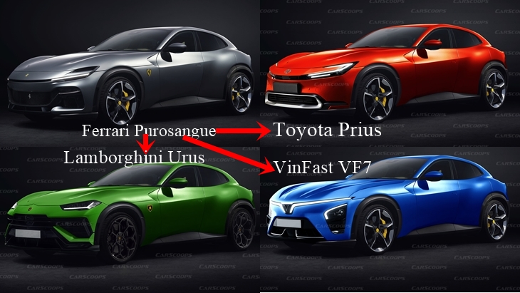 Thử phẫu thuật khuôn mặt cho Ferrari Purosangue với nhiều xe: Cái kết đầy bất ngờ cho xe Việt VinFast VF7