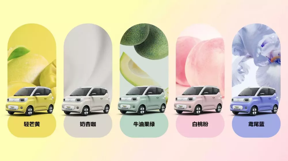 Wuling Hongguang Mini EV bản Macaron mới có 5 tùy chọn màu sắc để lựa chọn gồm vàng nhạt, cà phê sữa mơ, xanh bơ, hồng đào trắng và xanh iris.