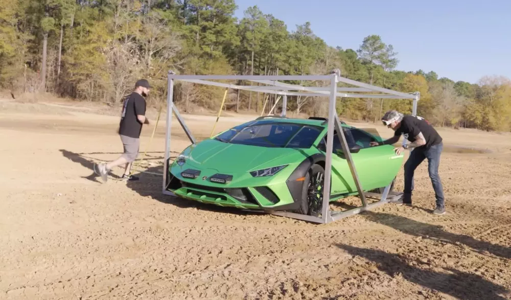 Chủ nhân của chiếc Lamborghini Huracan Sterrato muốn thấy chiếc xe của mình được buộc vào trực thăng và bay dọc theo một con đường đất tại công viên River Run ở Jacksonville, Texas, nơi ông dự định sẽ có một vài trải nghiệm lái xe địa hình thú vị trước khi lên đường tìm kiếm cây thông Noel hoàn hảo.