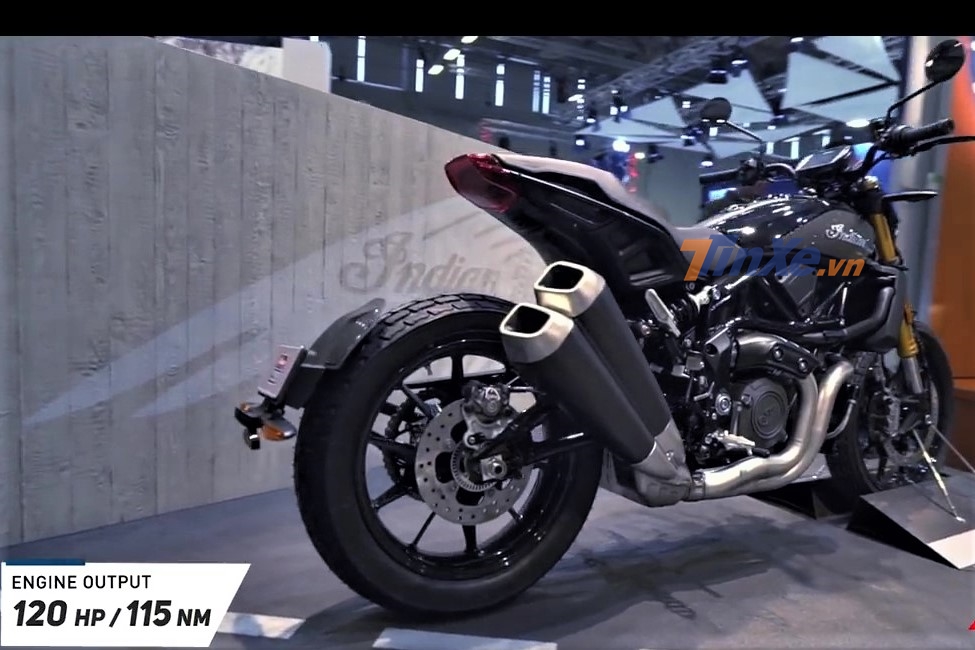 Dàn đuôi của xe được thiết kế bằng các đường nét khá lạ mắt khi trình bày bằng những khoang hở táo bạo nối liền với dàn đèn hậu LED được vuốt cao khá bắt mắt. Indian FTR1200 là chiếc xe rất hiện đại với 3 chế độ lái bao gồm S (Standard), R (Rain) và S (Sport) cho lực xoắn khác nhau cùng sự hỗ trợ của hệ thống TC (kiểm soát lực kéo) và hệ thống chống trượt, hệ thống cân bằng xe. Đây là chiếc xe thông minh được Indian ưu ái tích hợp vào khá nhiều công nghệ cao đang được áp dụng vào những chiếc xe 2 bánh.