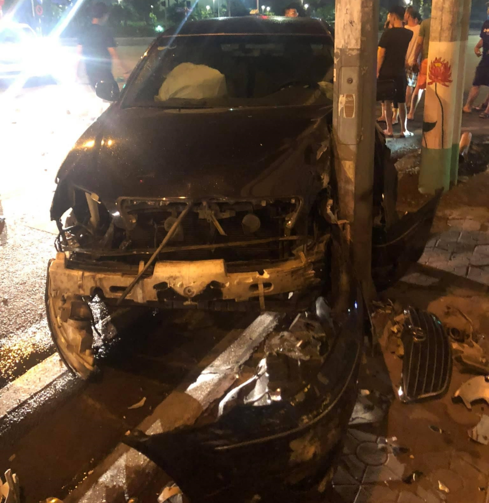 Sau va chạm giao thông với chiếc xe taxi ở ngã tư Trần Nguyên Hãn - Nguyễn Đức Cảnh, chiếc ô tô Toyota Camry tiếp tục lao sang bên đường và tông vào một trụ đèn mới chịu dừng lại hẳn.