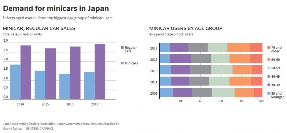 Thay vào đó, với cái tem giá khởi điểm khoảng 7.500 USD và thuế sở hữu thấp, xe mini đã có thêm một lượng người sử dụng trung thành trong số nhóm dân số người già đang tăng lên nhanh chóng ở Nhật Bản, nhiều người trong số đó có một nguồn thu nhập cố định.
