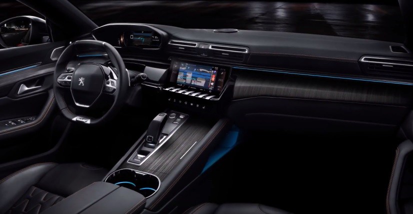 Bên trong không gian nội thất của Peugeot 508 mới vẫn là ngôn ngữ thiết kế i-Cockpit khiến những người đam mê dòng xe Peugeot nhanh chóng nhận ra sự quen thuộc và ấn tượng. Điển hình nhất có thể nhận ra vô-lăng 2 chấu thể thao được làm vát, màn hình cảm ứng trung tâm tích hợp các nút bấm kiểu siêu xe, màn hình hiển thị kỹ thuật số phía sau vô-lăng, hệ thống âm thanh cao cấp Focal...