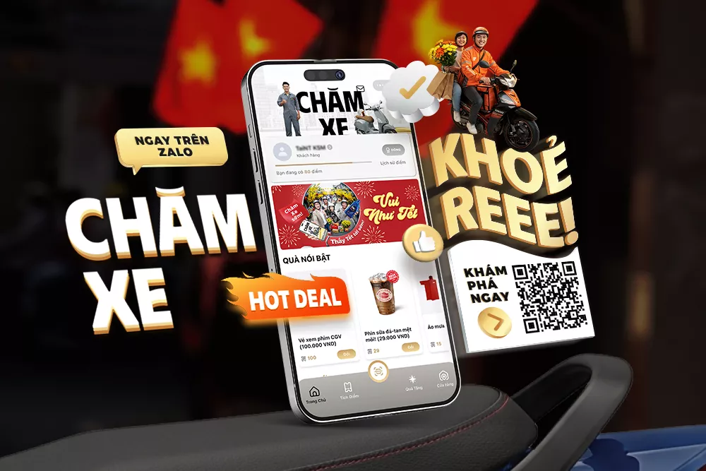 Chăm Xe là ứng dụng chăm sóc và bảo dưỡng xe được tích hợp trên Zalo. Với Chăm Xe, người dùng dễ tiếp cận các tiện ích hỗ trợ chăm sóc xe trên một điểm chạm. Đặc biệt, Chăm Xe giúp việc bảo dưỡng “vui như Tết” khi mang đến các quà tặng như voucher tiêu dùng, giải trí, phục vụ nhu cầu sinh hoạt dịp Tết.