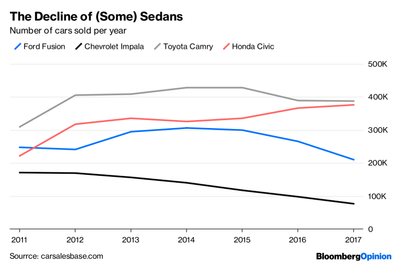 Hầu hết phân tích về sự ra đi của Ford và GM khỏi thị trường sedan nhấn mạnh rằng doanh số sedan đã mất trong những năm gần đây “bởi khách hàng đã hướng đến xe bán tải và SUV,” như New York Times nhận định.