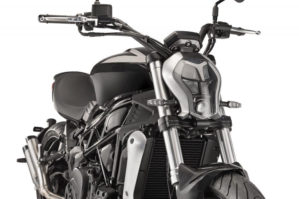 Đèn pha của Benelli 402S mang thiết kế mỏng, tạo hình như mặt người