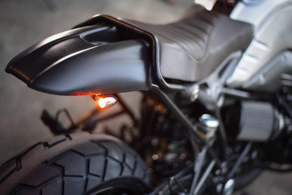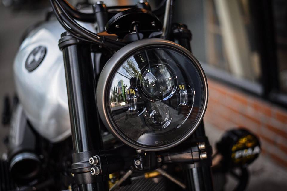 So với kiểu dáng nguyên bản thì chiếc xe độ này đã hoàn toàn biến chiếc Cafe Racer lai của BMW lột xác thành một chiếc xe Tracker bụi bặm. Có thể thấy dàn đầu đã gọn gàng hơn với đèn pha LED tròn trịa cùng bộ ghi đông cao có thanh giằng trông rất khỏe khoắn và cho cảm giác đa dụng hơn.