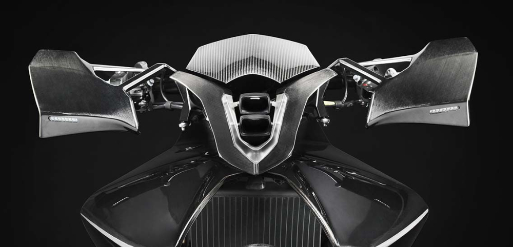 Dàn chân của xe cũng gây ấn tượng với hệ thống treo và hệ thống chuyển hướng được thiết lập đặc biệt. Cụ thể, thay thế cho hệ thống phuộc ống lồng thường thấy là trang bị càng nhôm cùng giảm xóc đơn, hệ thống chuyển hướng được tích hợp ở vành trước tương tự như chiếc Bimota Tesi H2.