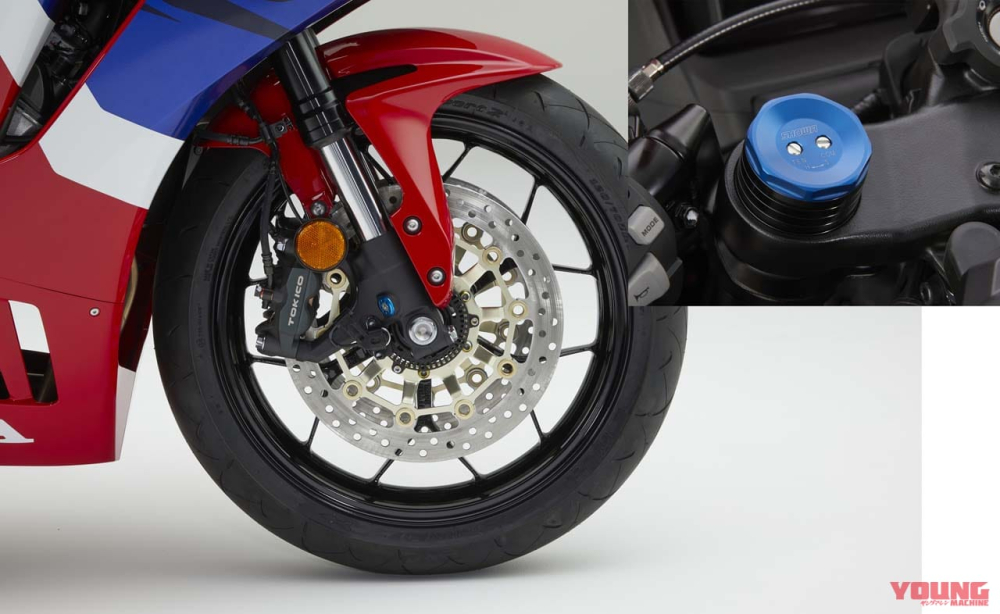 Ngoài các điểm mới trên, Honda CBR6000RR 2021 tiếp tục sử dụng các trang bị ở phiên bản cũ như khung sườn twin spar, hệ thống treo Showa, càng sau, bộ vành đúc 6 chấu chữ Y và củ phanh Tokico.