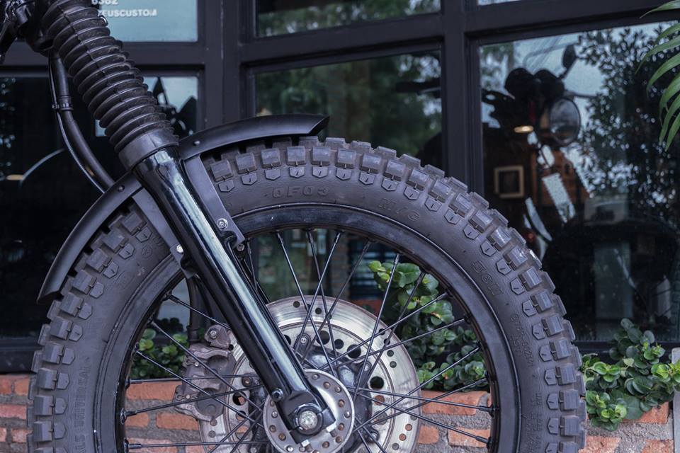 Lốp trước nguyên bản được thay thế bằng cặp lốp gai Dual Sport, cặp vành nan nhôm nguyên bản được sơn lại thành màu đen lì hợp xe, tăng cường khả năng offroad.