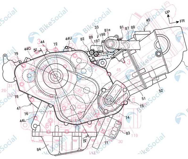 Không chỉ có xylanh và đầu bò mới, phần bưởng máy cũng rất khác so với bưởng máy trên NC750S. Giới thạo tin cho rằng các thay đổi ở phần dưới động cơ có thể do Honda NC850S sẽ được trang bị hộp số ly hợp kép DCT hiện đại.