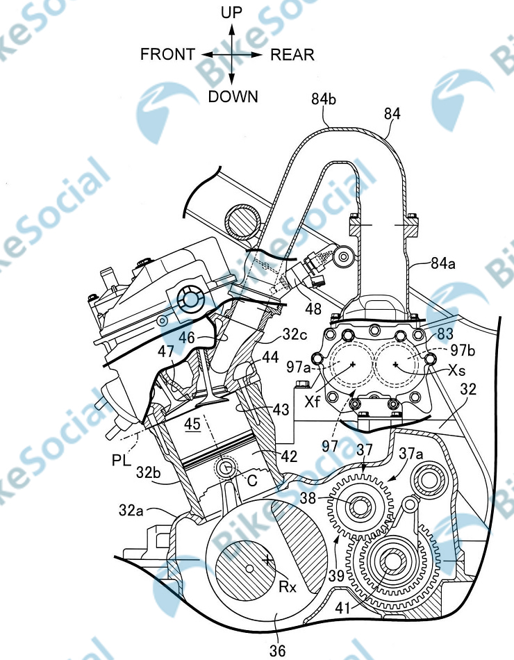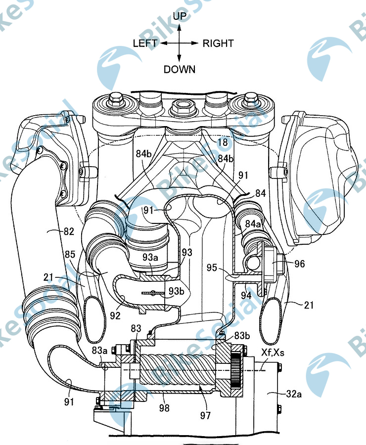 Nhìn vào thiết kế, có thể thấy hệ thống nạp khí nén sẽ được bố trí ở phía trên hộp số, khá giống với cách bố trí của Kawasaki. Với thiết kế này, rất có thể hệ thống siêu nạp này sẽ được vận hành bằng công năng sinh ra từ hộp số của xe.