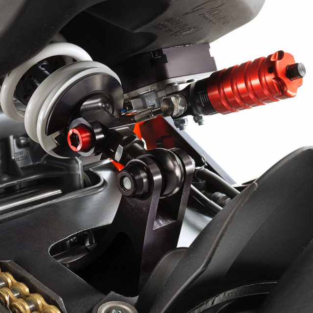Không sử dụng khối động cơ 3 xy-lanh của Triumph 765cc từ giải đua Moto2, siêu phẩm của KTM được trang bị khối động cơ đặc trưng xy-lanh đôi LC8c 889cc mới được thừa hưởng từ KTM 890 Duke R thế hệ mới. Khối động cơ này cho ra công suất tối đa đạt 128 mã lực và mô-men xoắn 101 Nm cùng ống xả titan từ Akrapovic giúp tăng lực đến 7hp so với khối động cơ nguyên bản từ 890 Duke R.