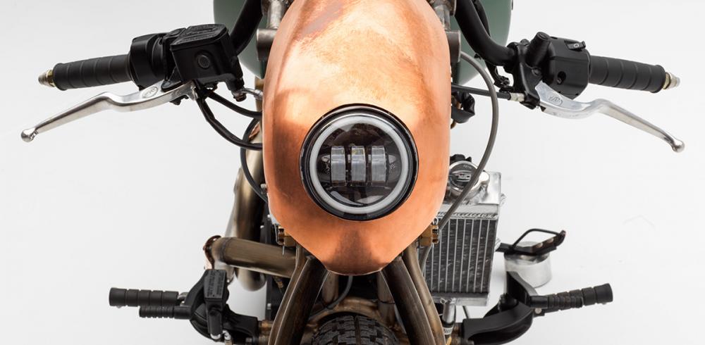 Giản đầu của bản độ được làm khá tỉ mỉ và đẹp mắt với bộ phuộc trước dị thường, sử dụng tông màu đồng rỉ cực chất.