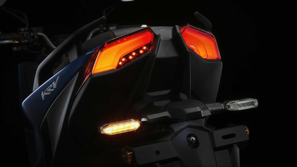 Đầu xe lớn, nổi bật với cặp đèn pha thiết kế góc cạnh, tạo nên sự mạnh mẽ và thể thao. Trong khi đó đuôi xe dày dặn, nhưng có phần thô kệch, không được mượt mà và gọn gàng. Bù lại, tổng thể thiết kế xe Kymco KRV khá ăn nhập với phong cách xe.