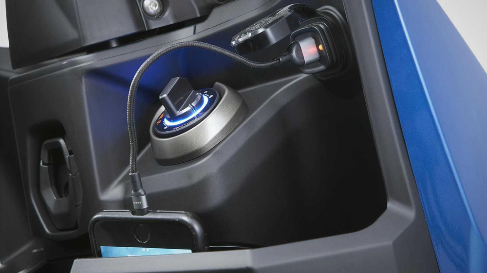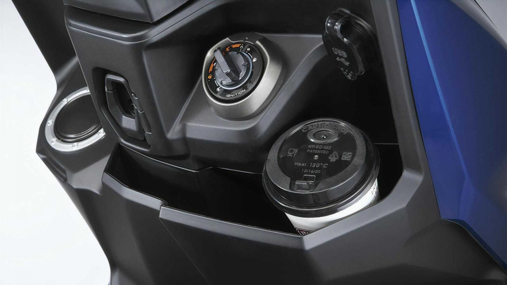 Tiện ích của xe có thể kể đến cốp chứa đồ dưới yên xe có dung tích lớn, để vừa mũ bảo hiểm fullface, hộc chứa đồ phía trước đi kèm cổng sạc USB, móc treo đồ và nắp bình xăng được bố trí cao mang đến sự thuận tiện khi đổ xăng.