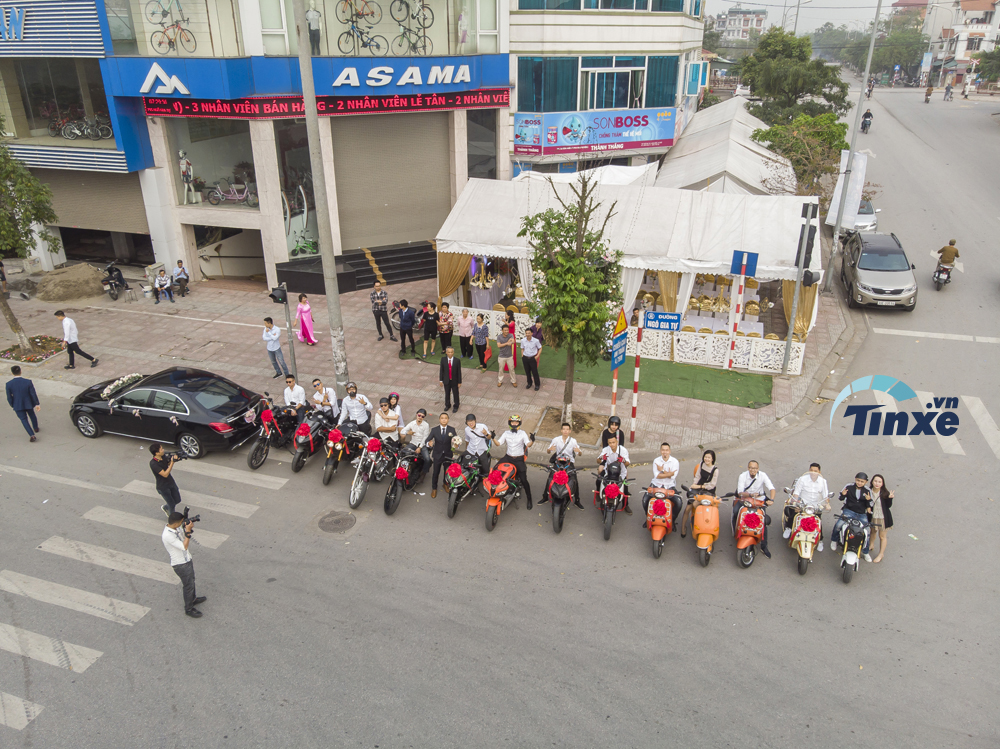 Dàn xe máy với đủ các chủng loại và dung tích xi-lanh nhưng có điểm chung đều là những người bạn thân thiết của cô dâu-chú rể.