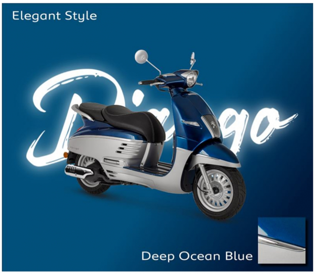 Phiên bản mới của Peugeot Django sở hữu nhiều màu sơn mới hết sức bắt mắt với những bộ màu nổi như Xanh nước biển, xám, đỏ hay những bộ màu kết hợp chỉ Sport đầy hấp dẫn. Ngoài ra, bên hông của hai phiên bản này còn có thêm con số 55 giúp hoài niệm về mẫu xe nổi tiếng Peugeot S55.