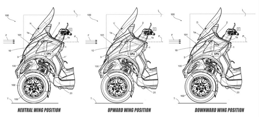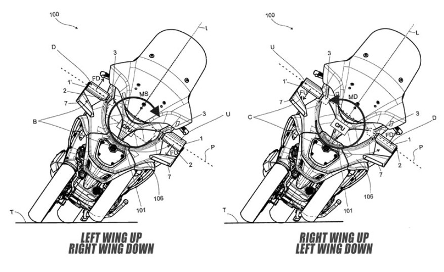 Bên cạnh đó, hệ thống cánh gió trên xe có thể được điều chỉnh độc lập, một bên cụp xuống, một bên ngửa lên dựa độ nghiêng của xe khi vào cua. Việc cánh gió hoạt động độc lập cho phép xe vận hành một cách ổn định và có khả năng vào cua ở tốc độ cao hơn.