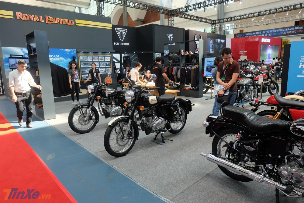 Gian trưng bày của Royal Enfield được đặt bên cạnh Triumph tại triển lãm Vietnam AutoExpo 2018.
