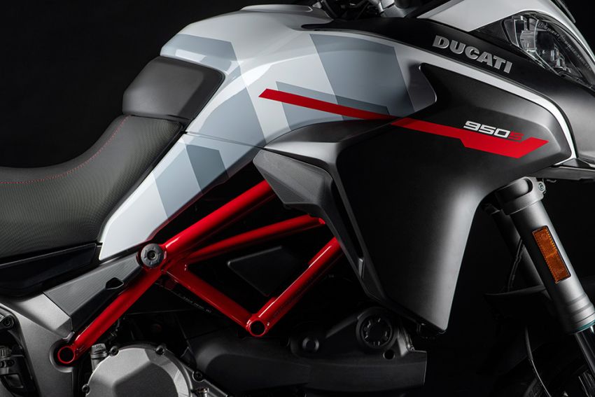 Được biết, màu sắc và tem xe Ducati Multistrada 950 S 2020 lấy cảm hứng từ bộ màu Ducati Corse mà Ducati sử dụng trên xe đua của mình ở giải đua MotoGP và WSBK. Cụ thể, xe khoác trên mình dàn áo màu Trắng và Xám chủ đạo, nổi bật trên đó là màu đỏ truyền thống trên bộ khung lưới mắt cáo và vành xe. Sự kết hợp này mang đến cho Ducati Multistrada 950 S 2020 vẻ thể thao, sang trọng, mềm mại và cân bằng.