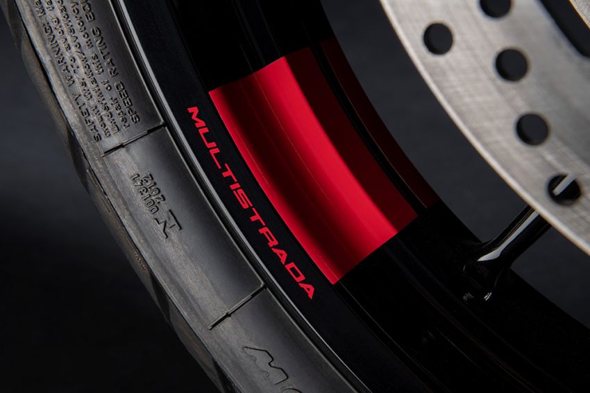 Với cân nặng 229 kg, mẫu Multistrada 950 sử dụng bộ vành đúc hoặc vành nan với kích thước 19 inch ở trước và 17 inch phía sau. Chiều cao yên tiêu chuẩn của xe là 840 mm, khách hàng có nhu cầu có thể thay yên để tăng hoặc hạ thấp chiều cao.