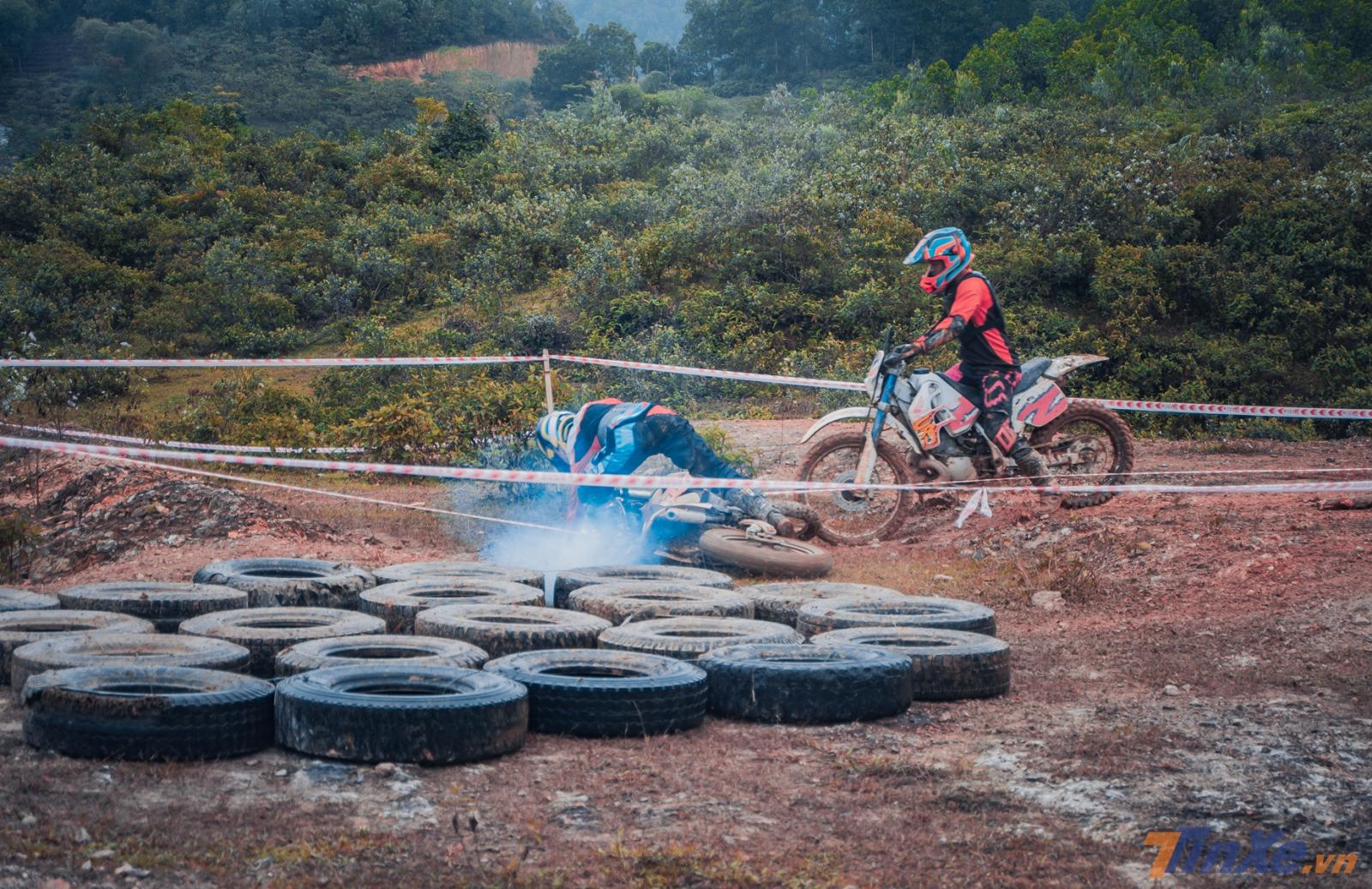 Một số vận động viên "ngã ngựa" khá đau khi thực hiện màn tiếp đất không được chính xác và "đen" khi bánh trước lọt thỏm vào những chiếc lốp xe.