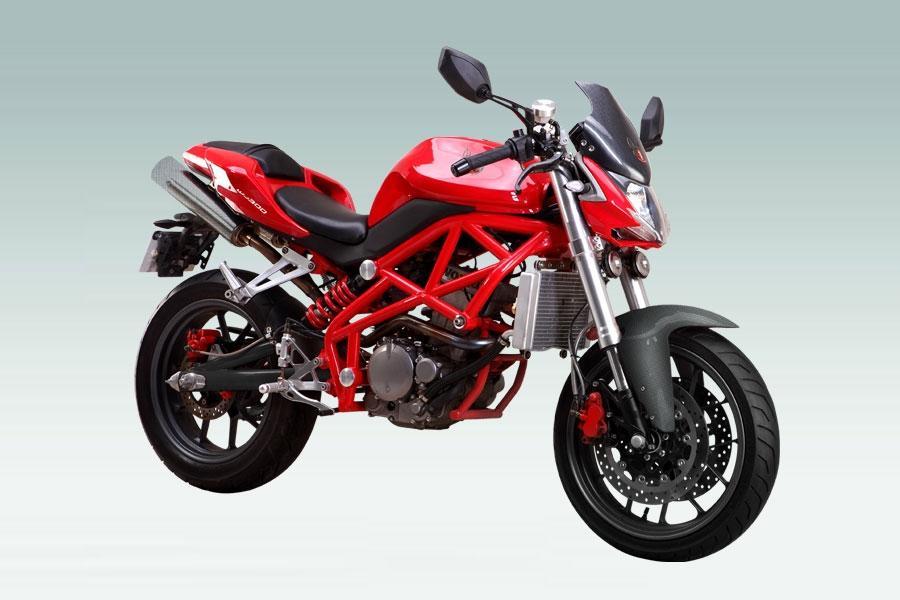 Nhìn từ xa, có vẻ như mẫu xe nhái này không phải là một phiên bản quá tệ khi mang kiểu dáng khá chiến khi sử dụng khung mắt cáo lớn, dàn đầu hoành tráng với phuộc USD và phanh đĩa đôi. Dàn đuôi được nhái khá bài bản khi cho độ giống đến 70% so với phiên bản thực trừ bộ gắp sau. Ngoài ra chiếc xe cũng chỉ được trang bị khối động cơ xy-lanh đơn 300 phân khối cho sức mạnh bằng 1/10 so với mẫu xe của Ducati mà thôi.