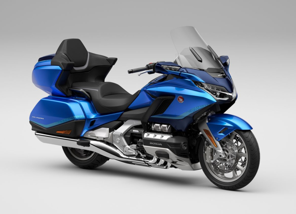 Cuối cùng là Gold Wing với trang bị DCT sẽ có tùy chọn màu Xanh nhám Mat Jeans cứng cáp. Ngoài các tùy chọn màu mới, Honda Gold Wing vẫn giữ nguyên toàn bộ trang bị và thiết kế tương tự như bản nâng cấp gần nhất, tập trung vào sự thoải mái và tiện lợi cho người dùng trên những cung đường dài.